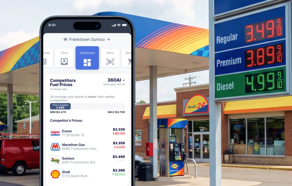 One tap in Retail360 — prices update on your pumps and signs instantly. Available on iOS and Android.